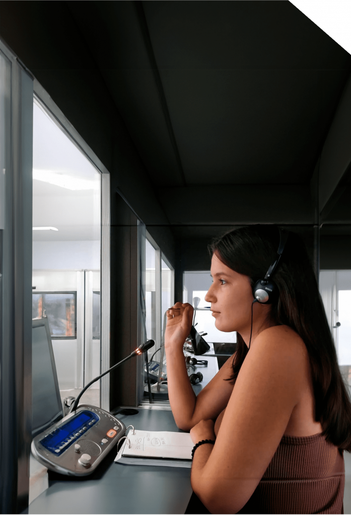 Al delegar estos servicios a una profesional, te liberas de la compleja tarea de encontrar intérpretes o traductores, alquilar equipos y coordinar todo el proceso.
